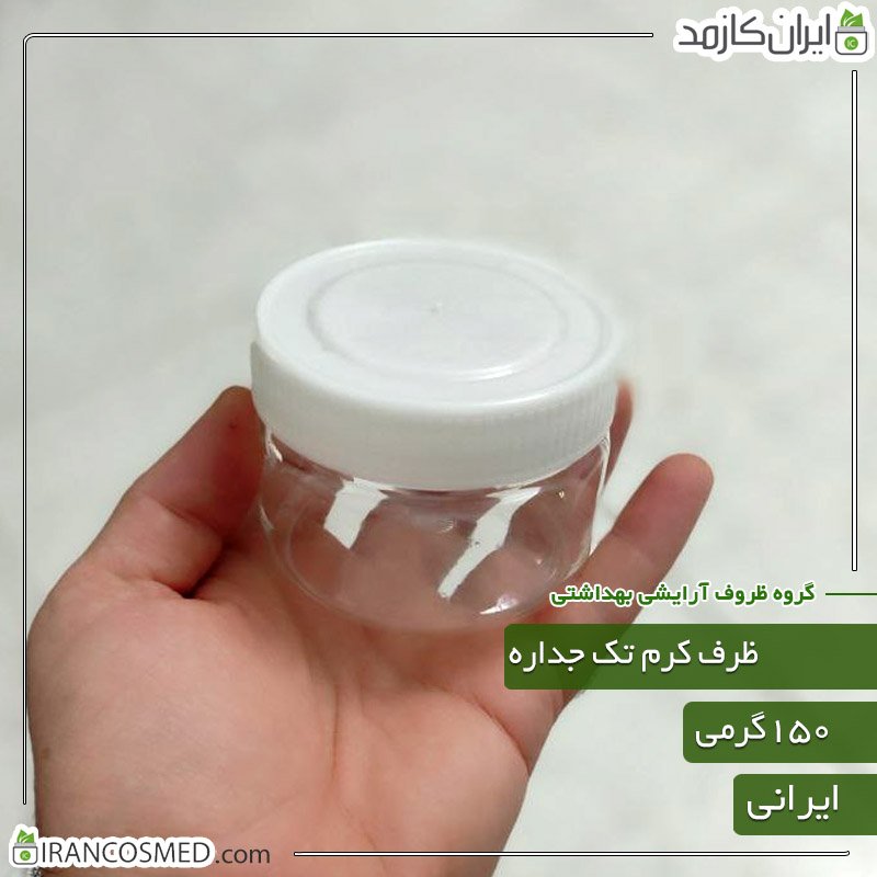 ظرف کرم 150گرمی شفاف تکجداره بادرب سفید