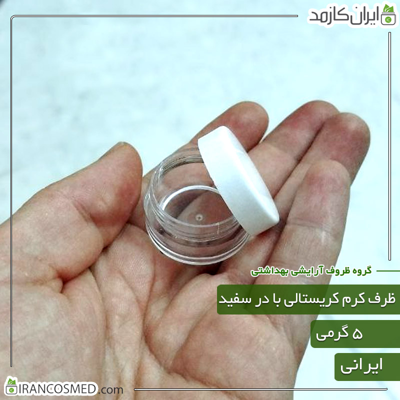 ظرف کرم 5گرمی گرد شفاف با درب سفید
