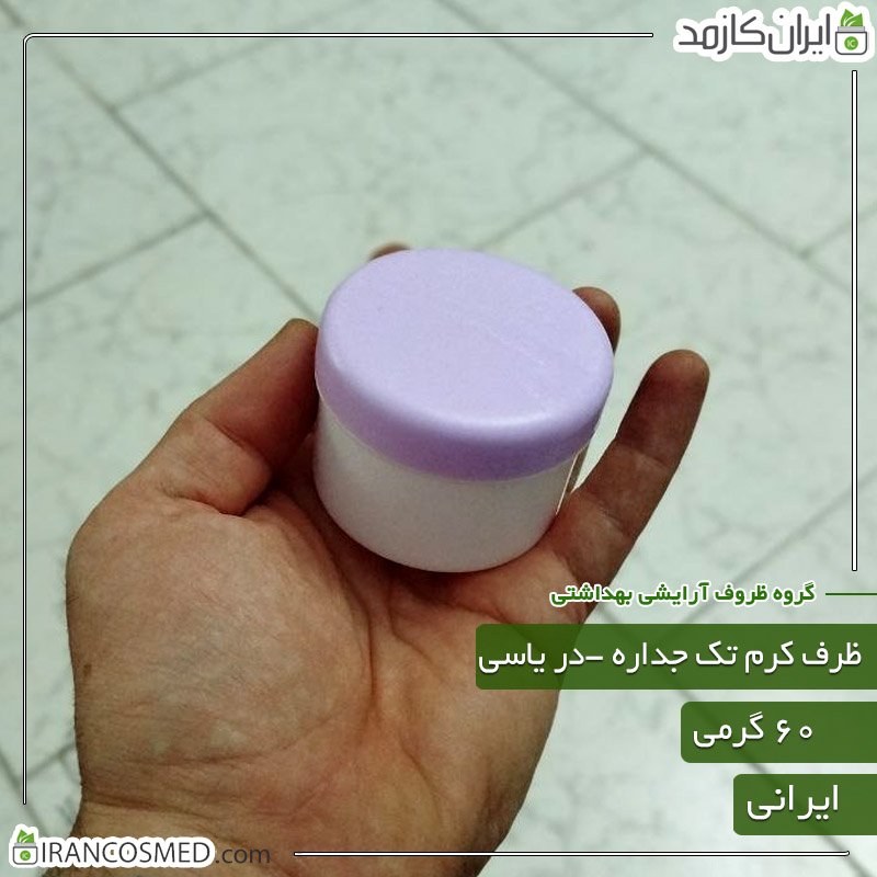 ظرف کرم 60گرمی تک جداره سفید با درب یاسی
